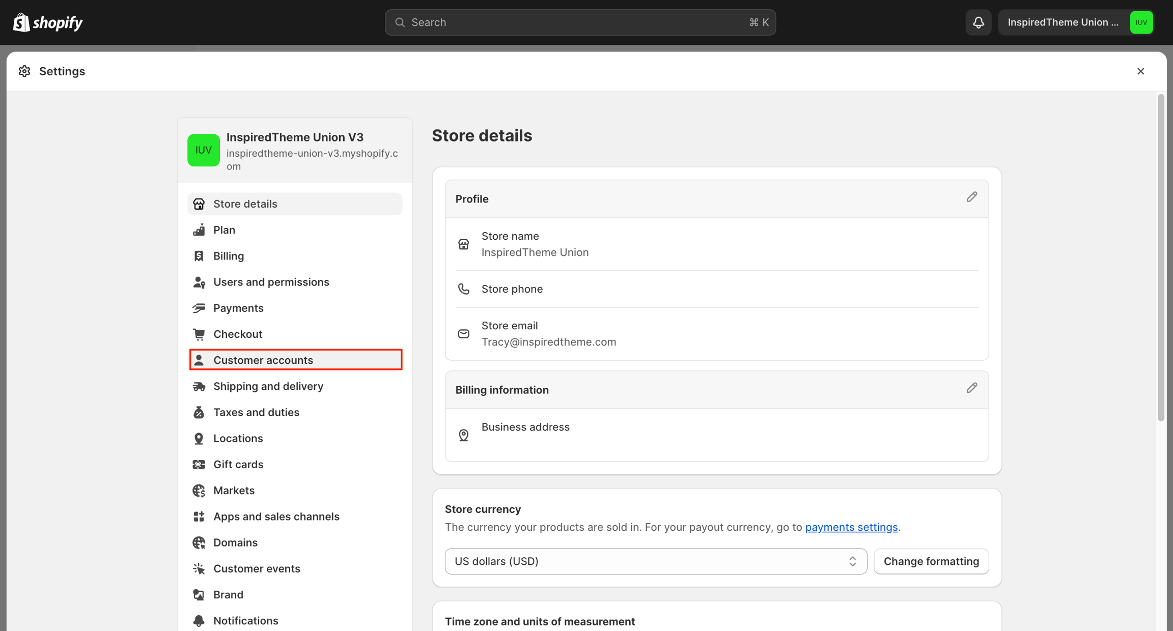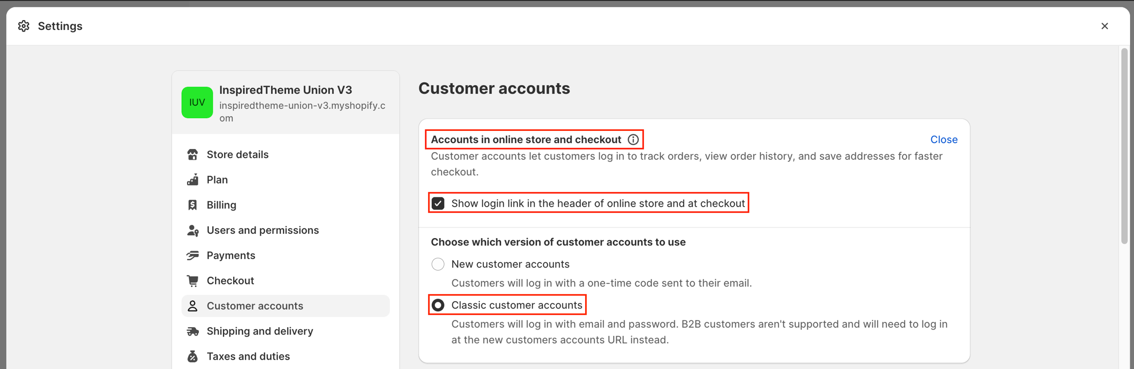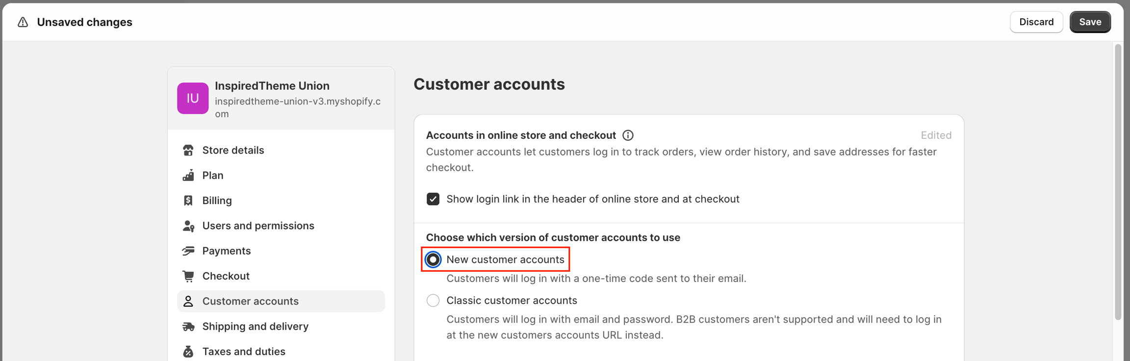 1. From your Shopify Admin > go to Settings > Customer accounts.