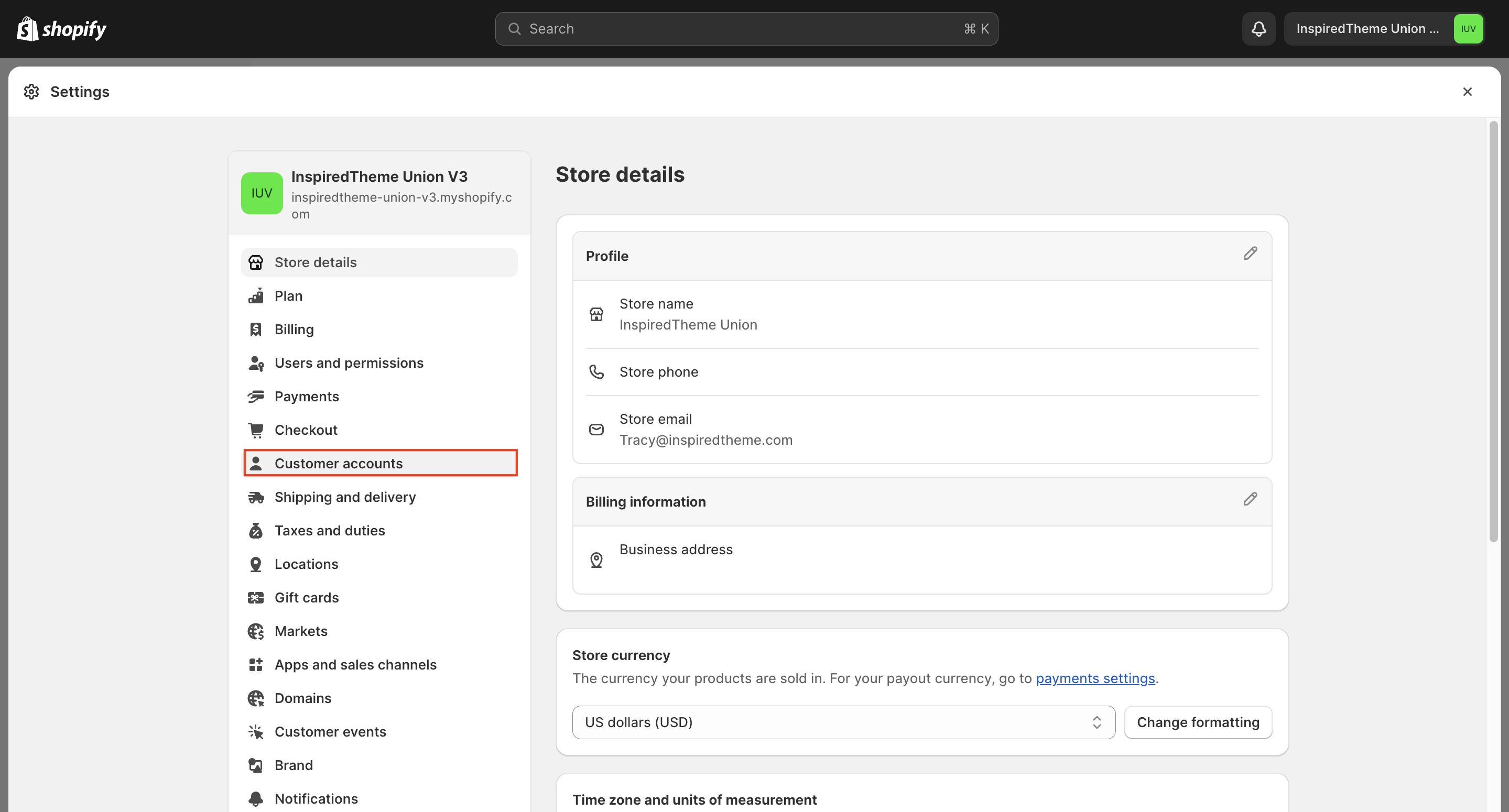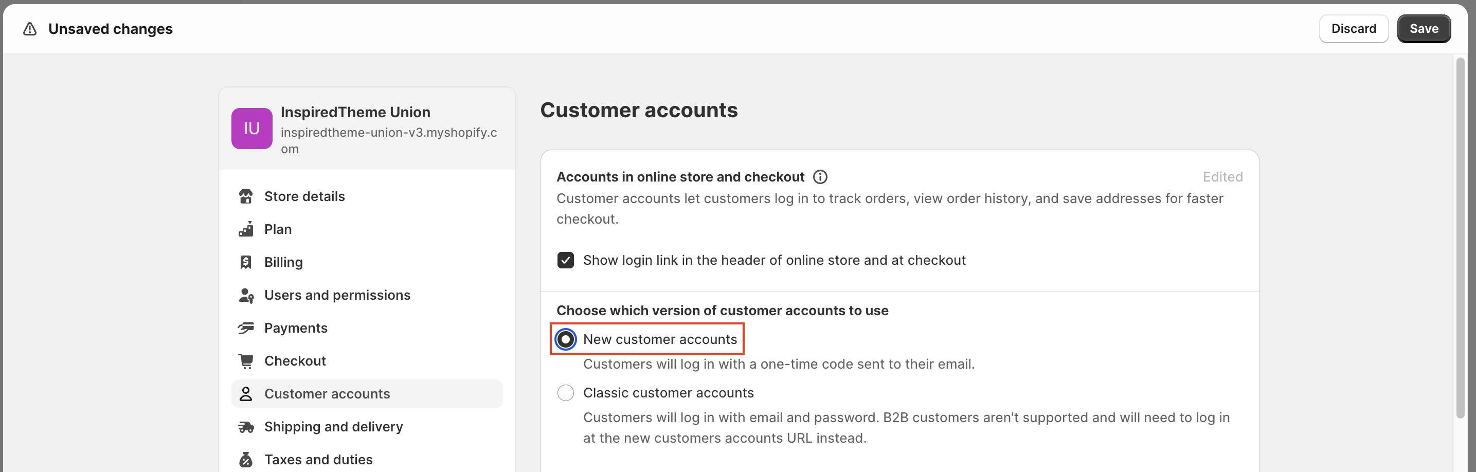 1. From your **Shopify Admin >** go to **Settings** **> Customer accounts.**