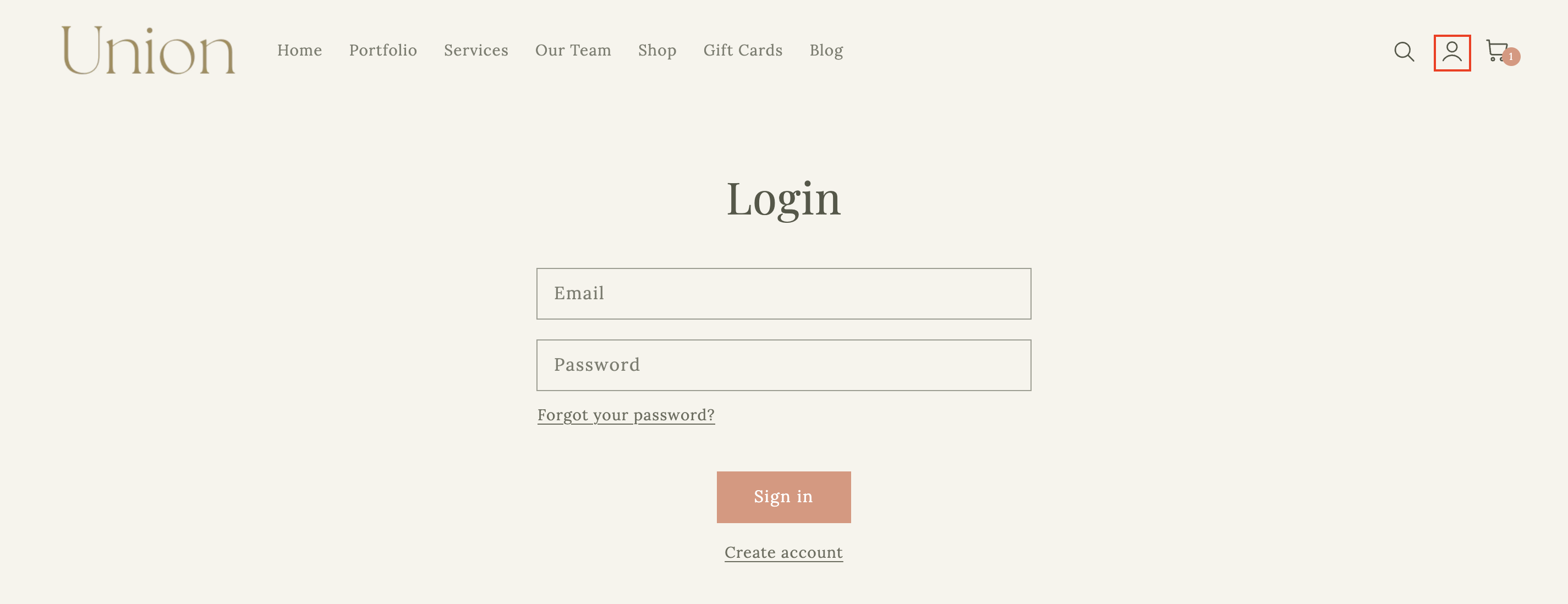 Customers can log in using an email and a password. Customers accept account invites or create a new account from the login page. Customers can edit the name associated with the shipping address, which doesn't change the customer profile name in your admin.