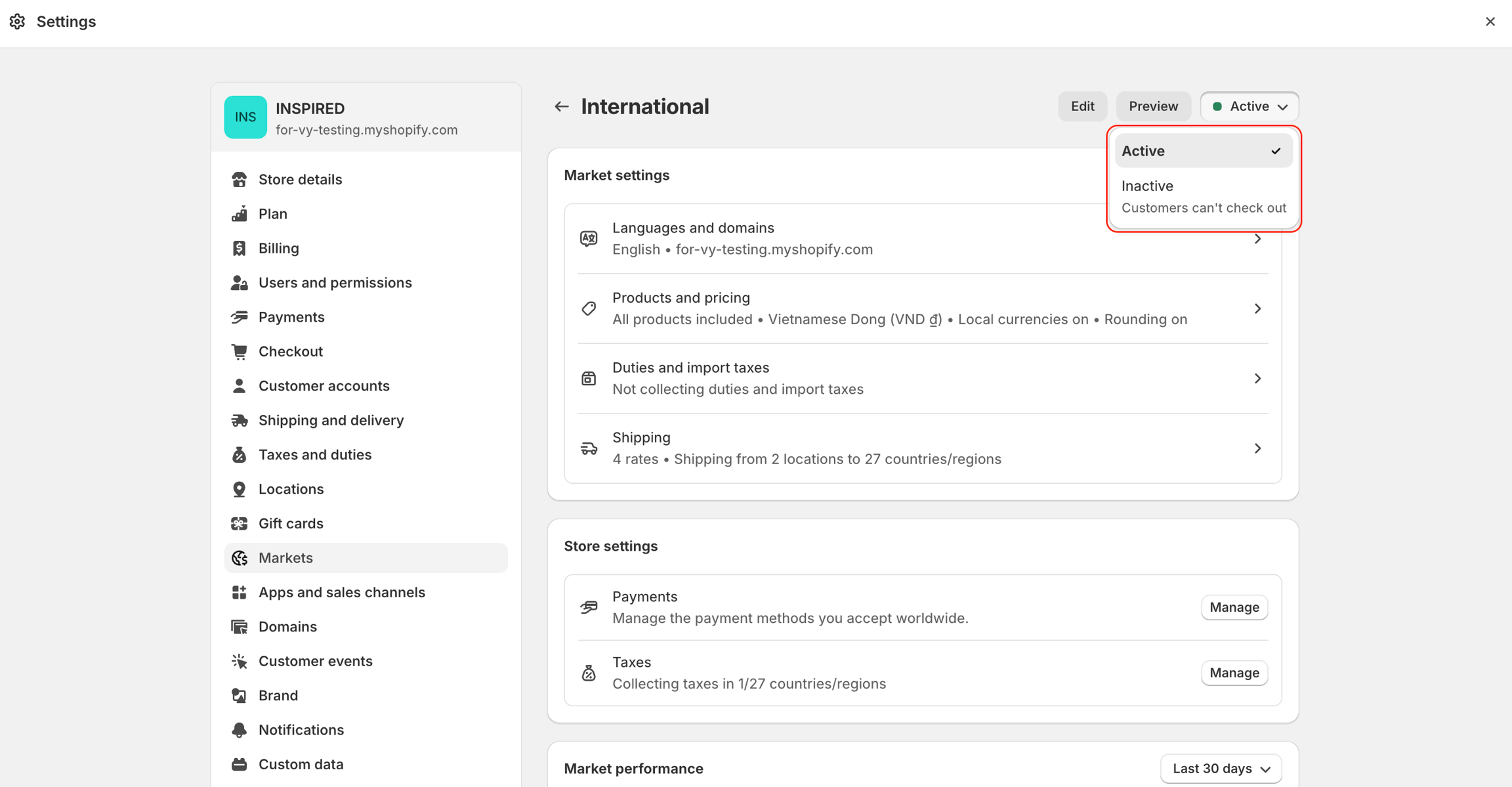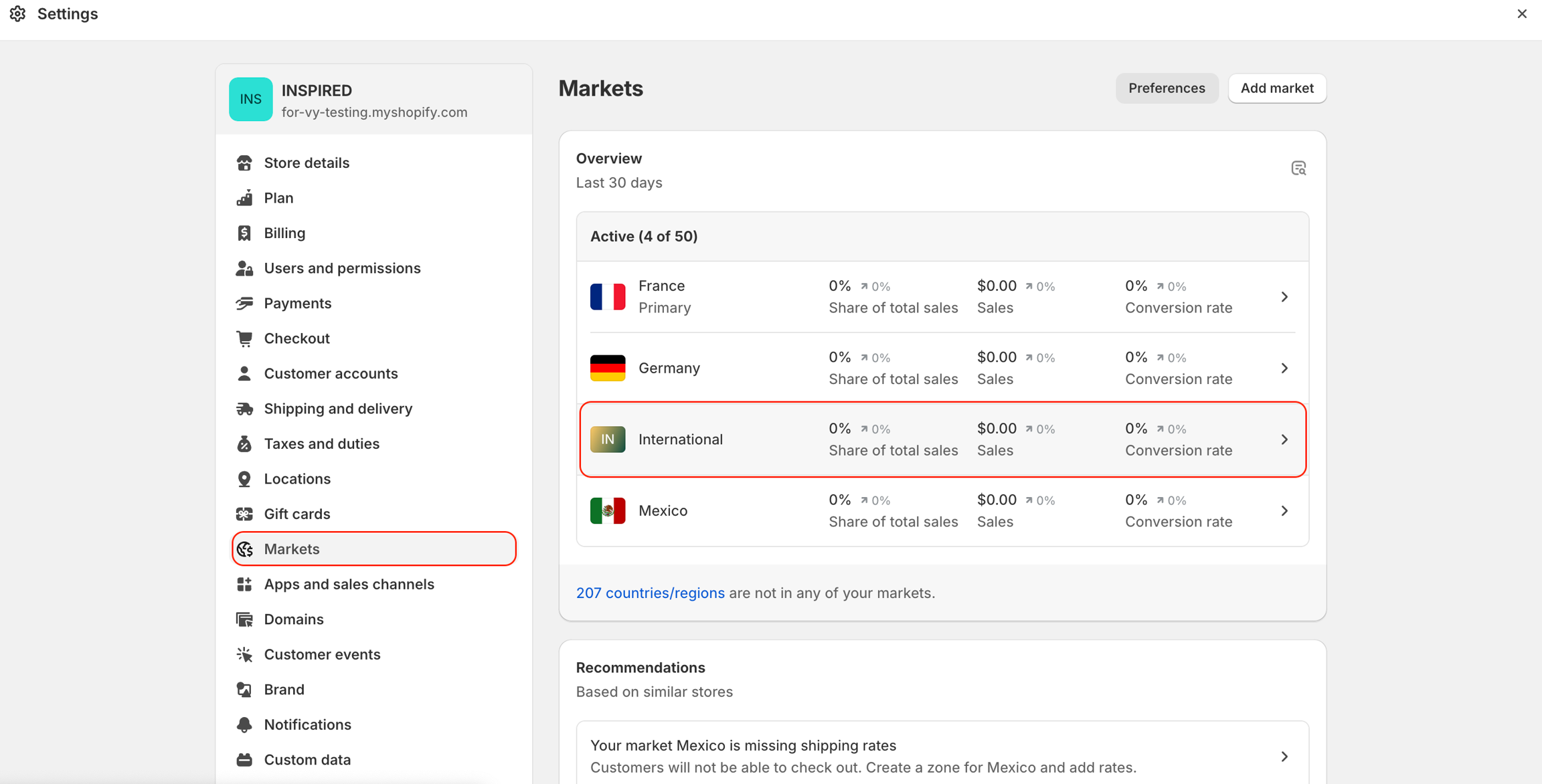 From your Shopify admin, go to Settings > Markets