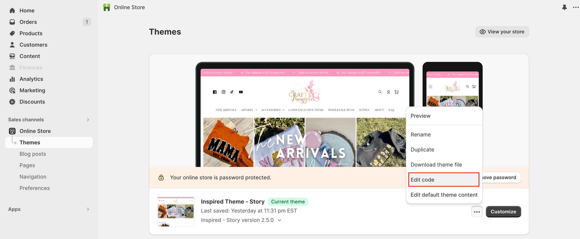 From your Shopify admin, go to Online Store > Themes.