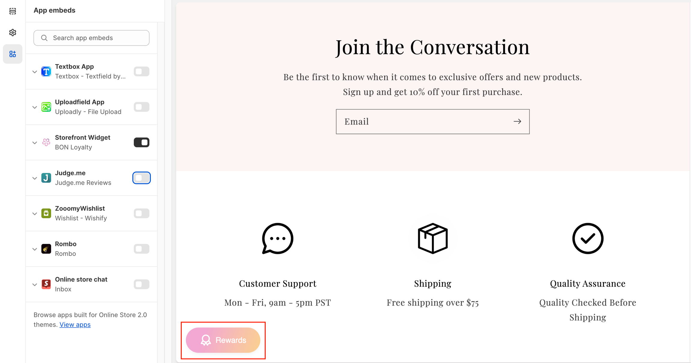 Preview your store to view the embedded app live.