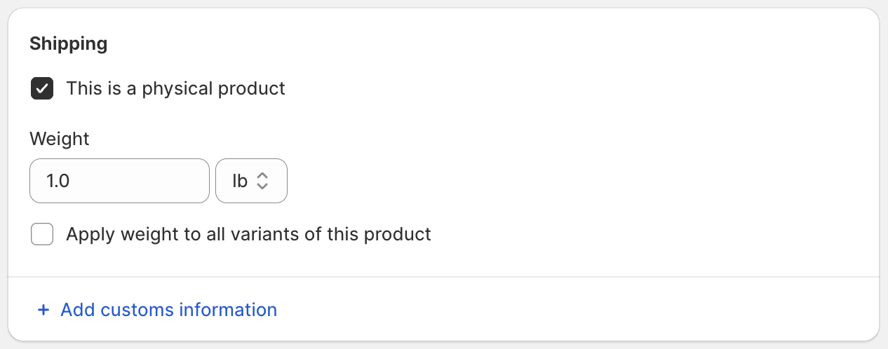 * Under **Shipping**, check **This is a physical product**.