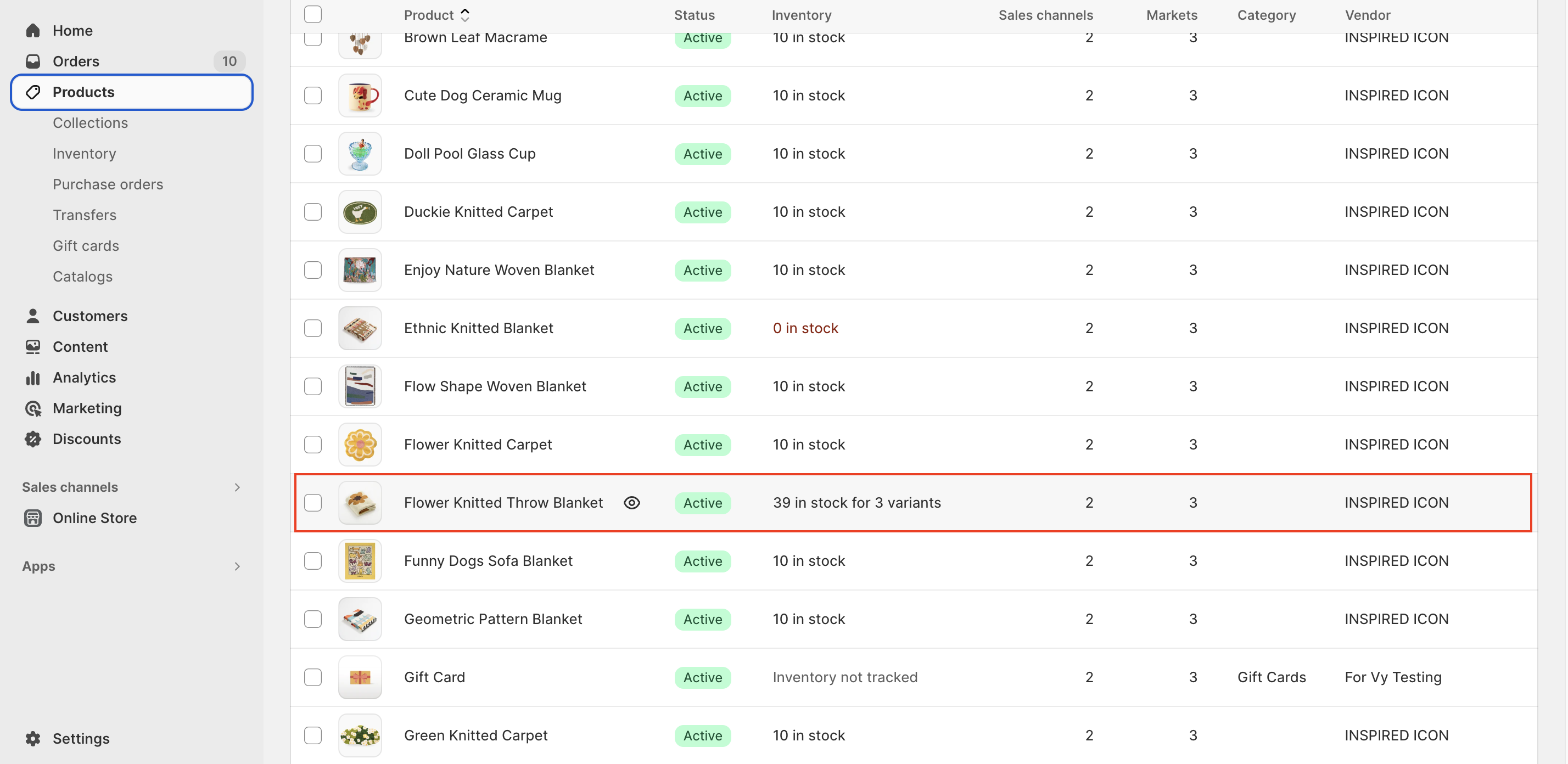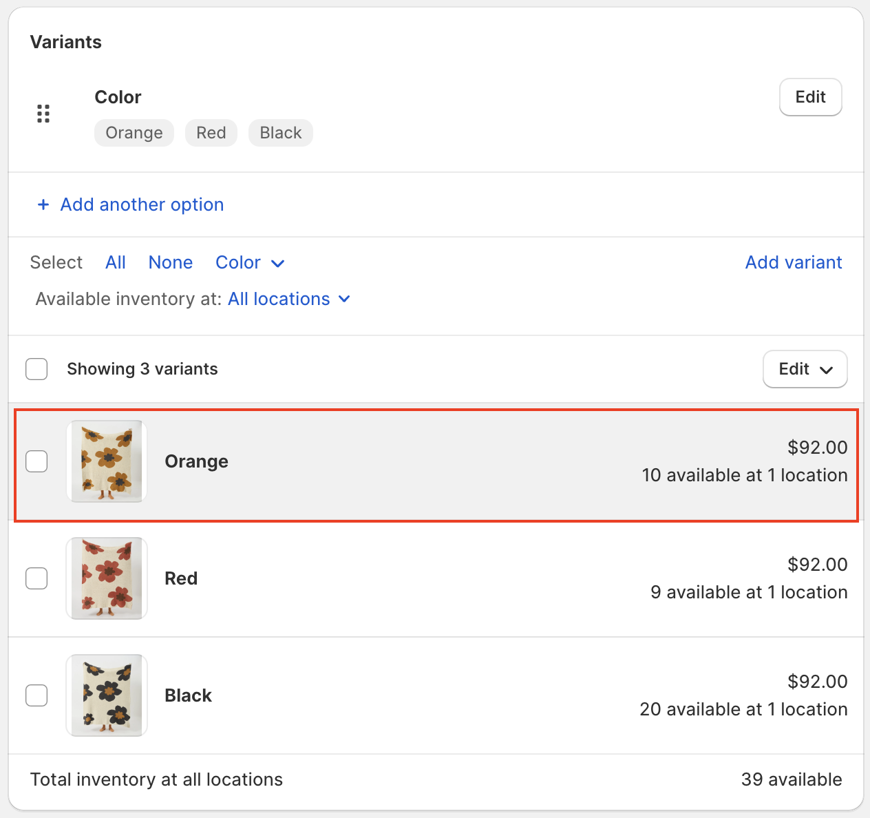 * Under **Inventory**, select locations that stock the selected variants.