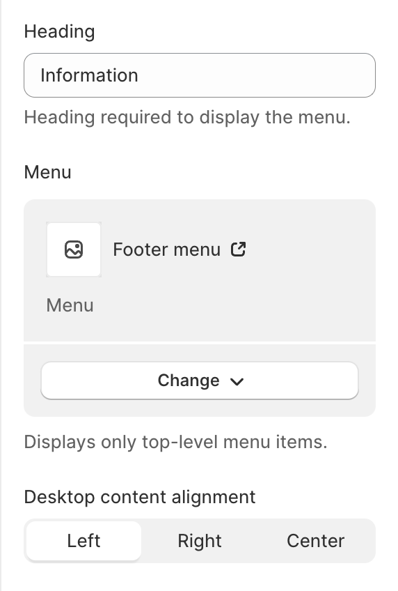 ### 2. Adjust the **Desktop content alignment** of each block to create the best layout for your Footer.