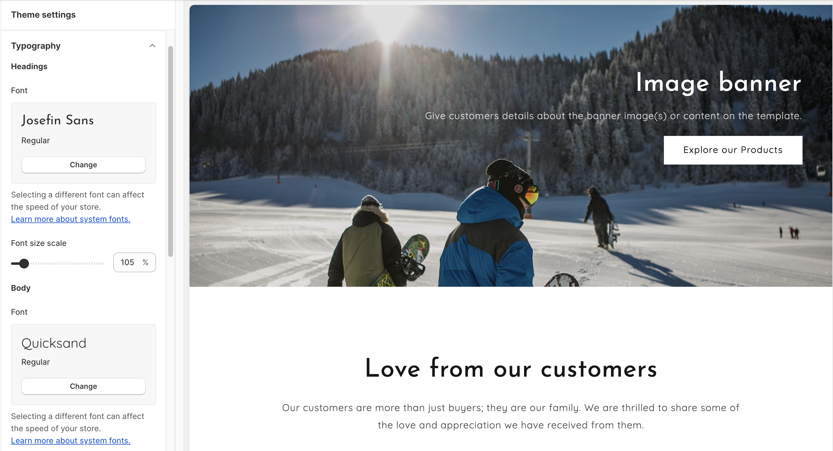 Customizing the [**colors**](https://help.inspiredtheme.com/articles/theme-settings/inspiredtheme-settings-intro/colors) and [**typography**](https://help.inspiredtheme.com/articles/theme-settings/inspiredtheme-settings-intro/typography) of your theme is a crucial step in creating a cohesive and branded storefront.&#x20;