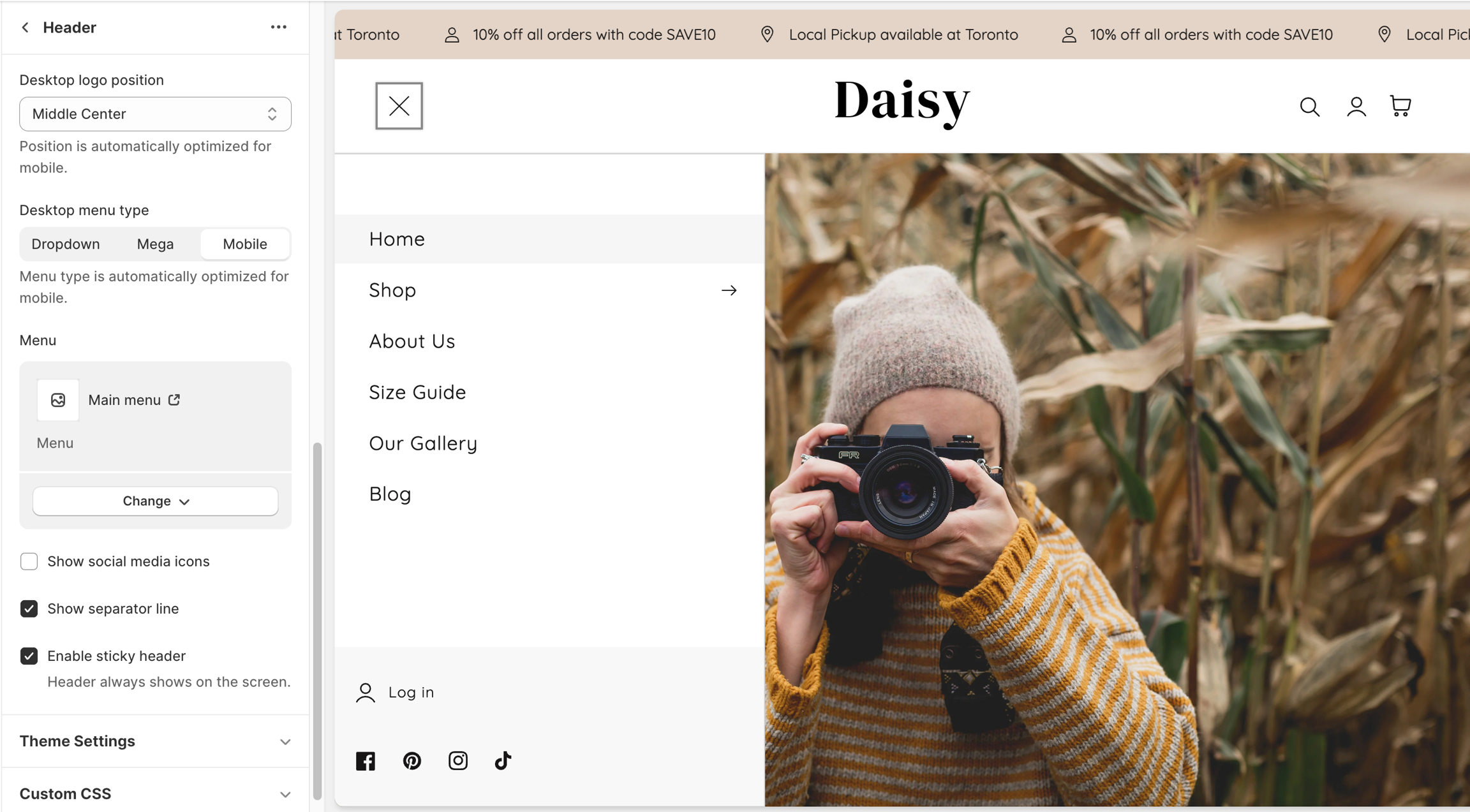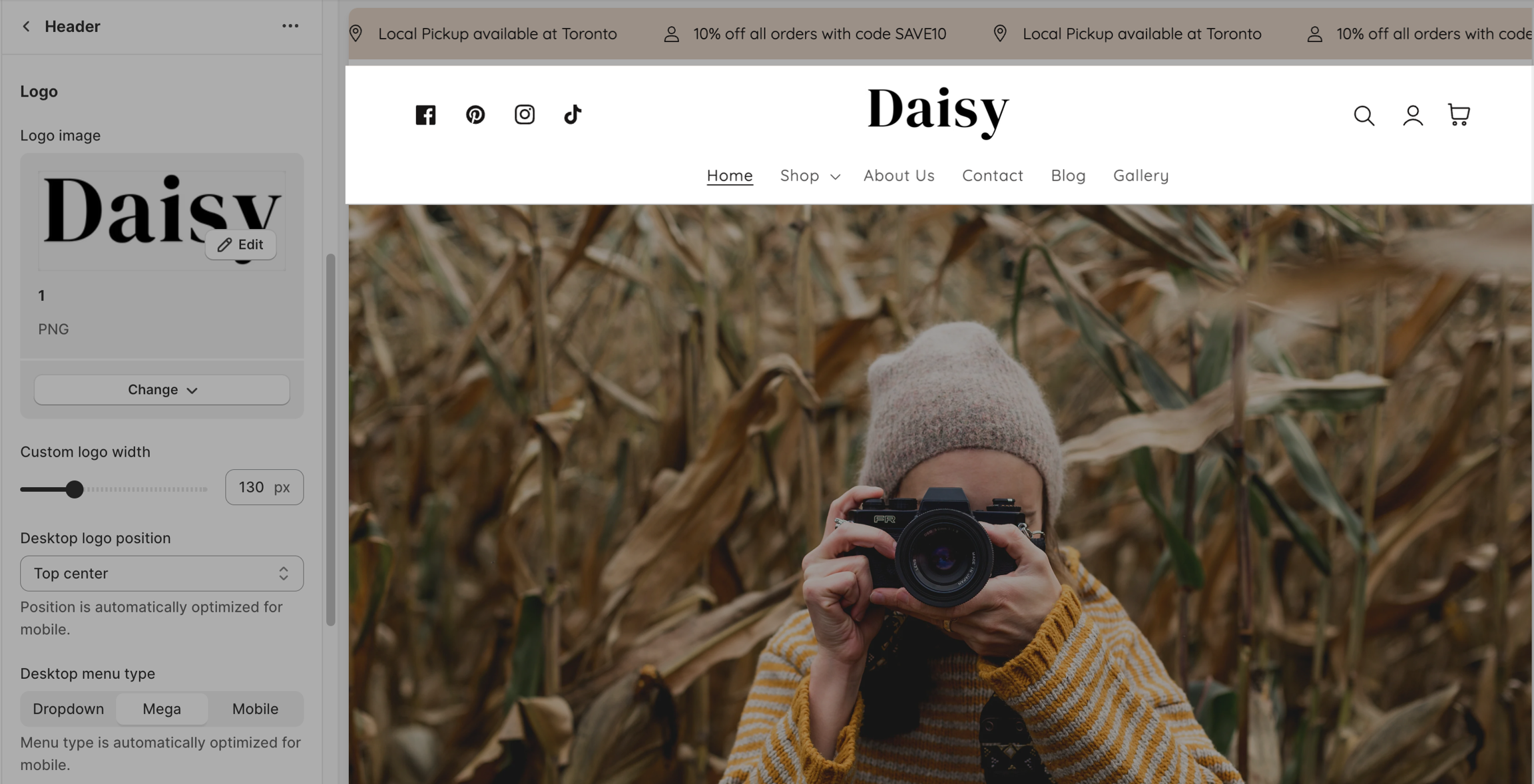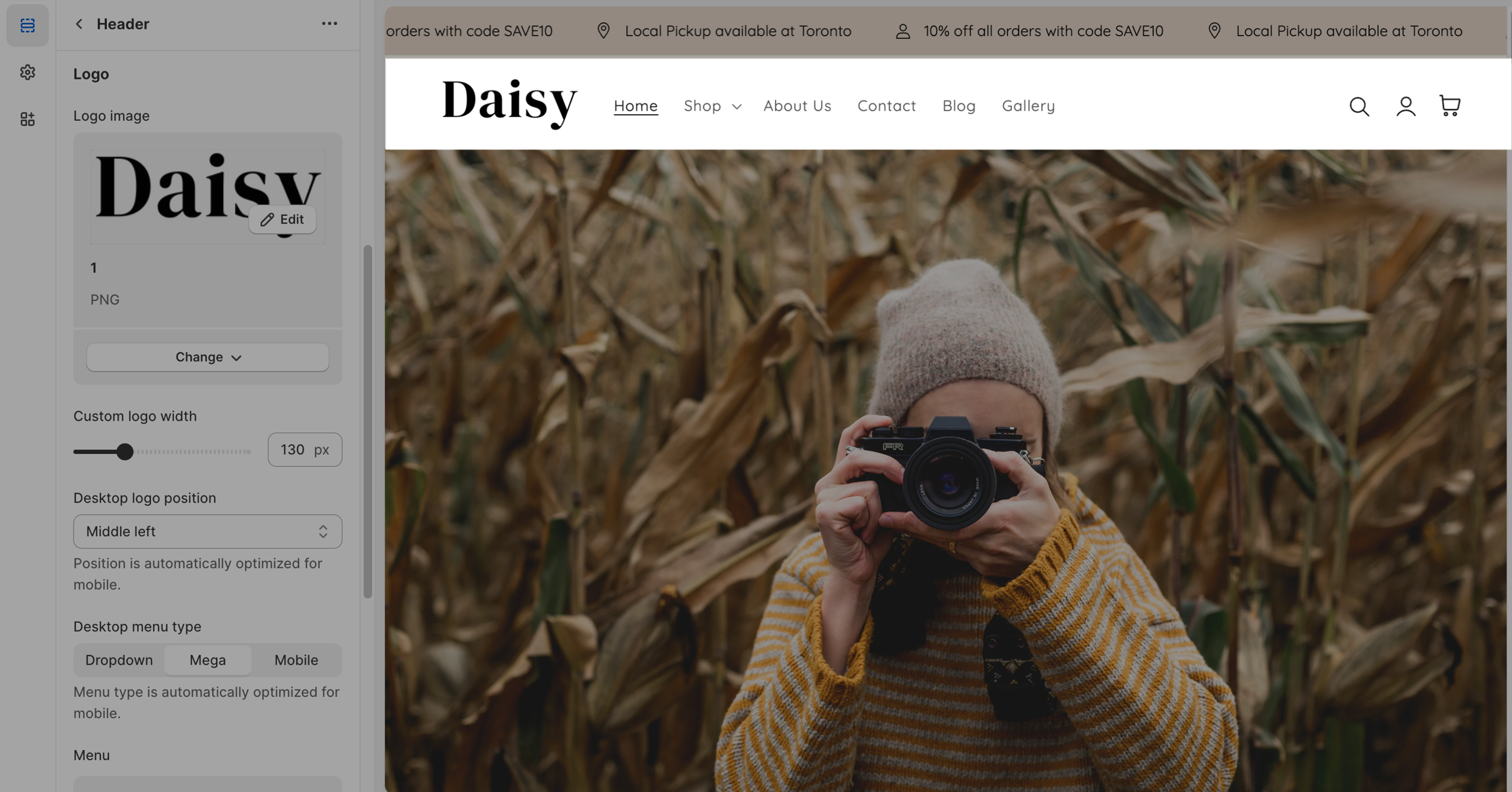 Desktop menu type: This setting helps you customize the display of the header menu.