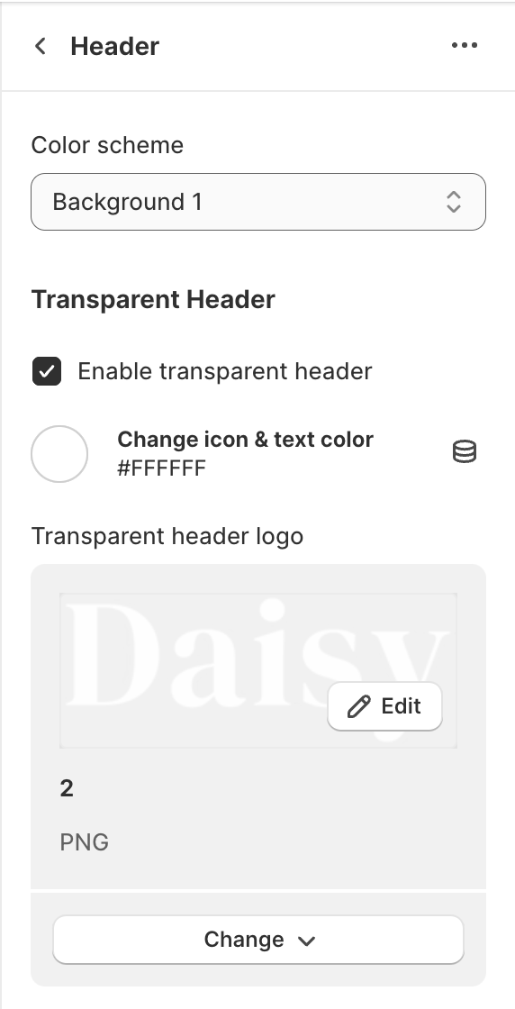 Check the Enable transparent header checkbox to turn on the transparent header feature.