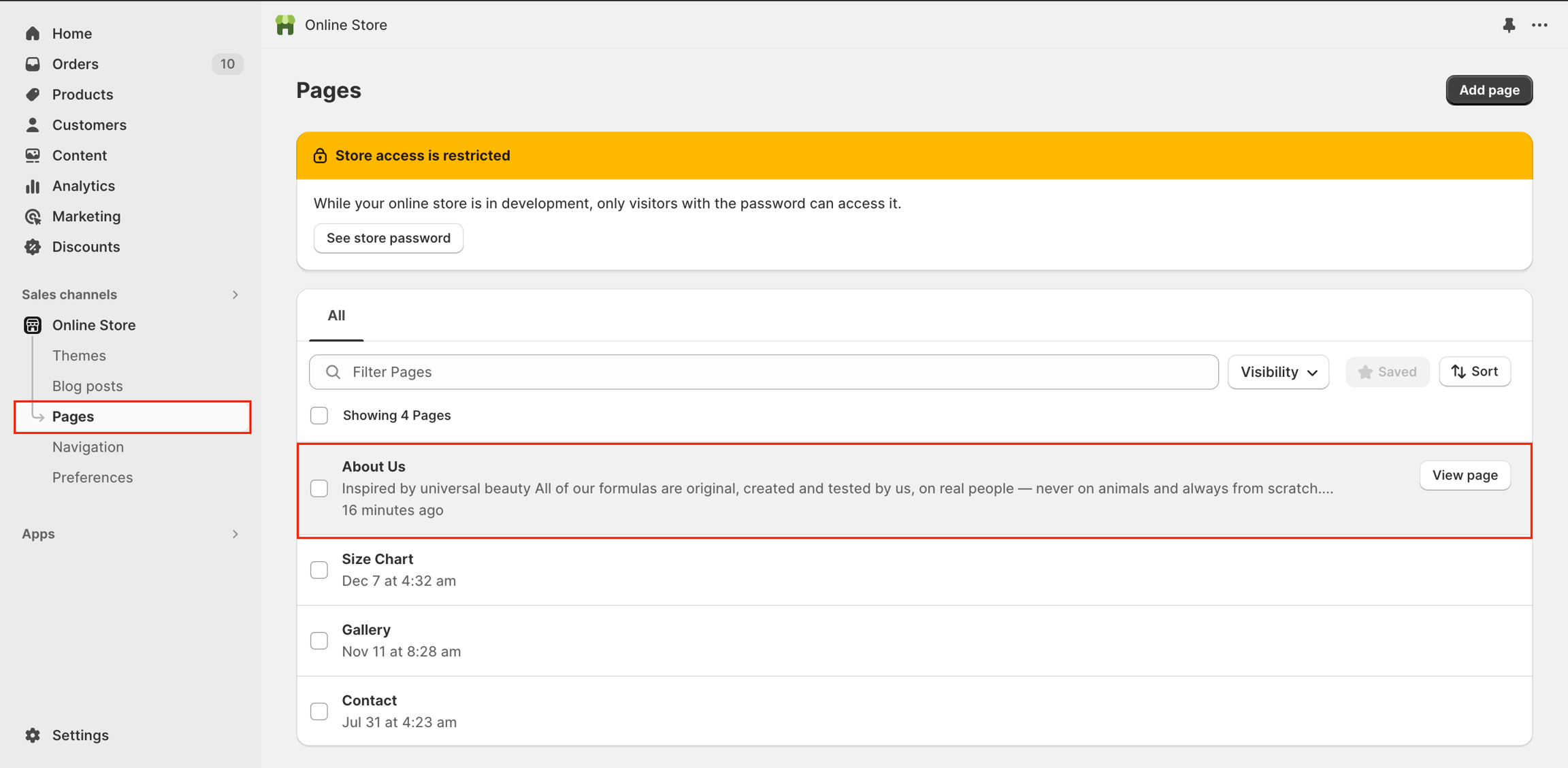 From your Shopify admin, go to Online Store > Pages.