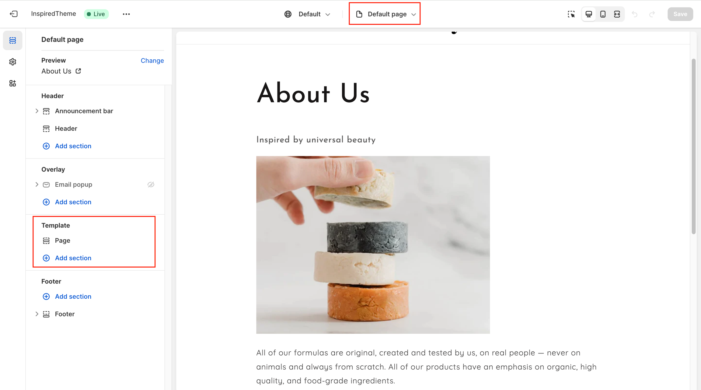 With InspiredTheme, we've got you covered with our customizable templates for these vital pages (such as the About page, Contact page, FAQ page, and more.). You have the power to create a store that not only sells products but also tells your unique brand story.