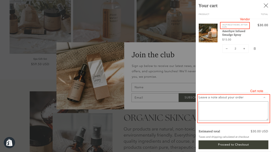 To provide customers with an area to make special requests or add extra order information, select the Enable cart note option.