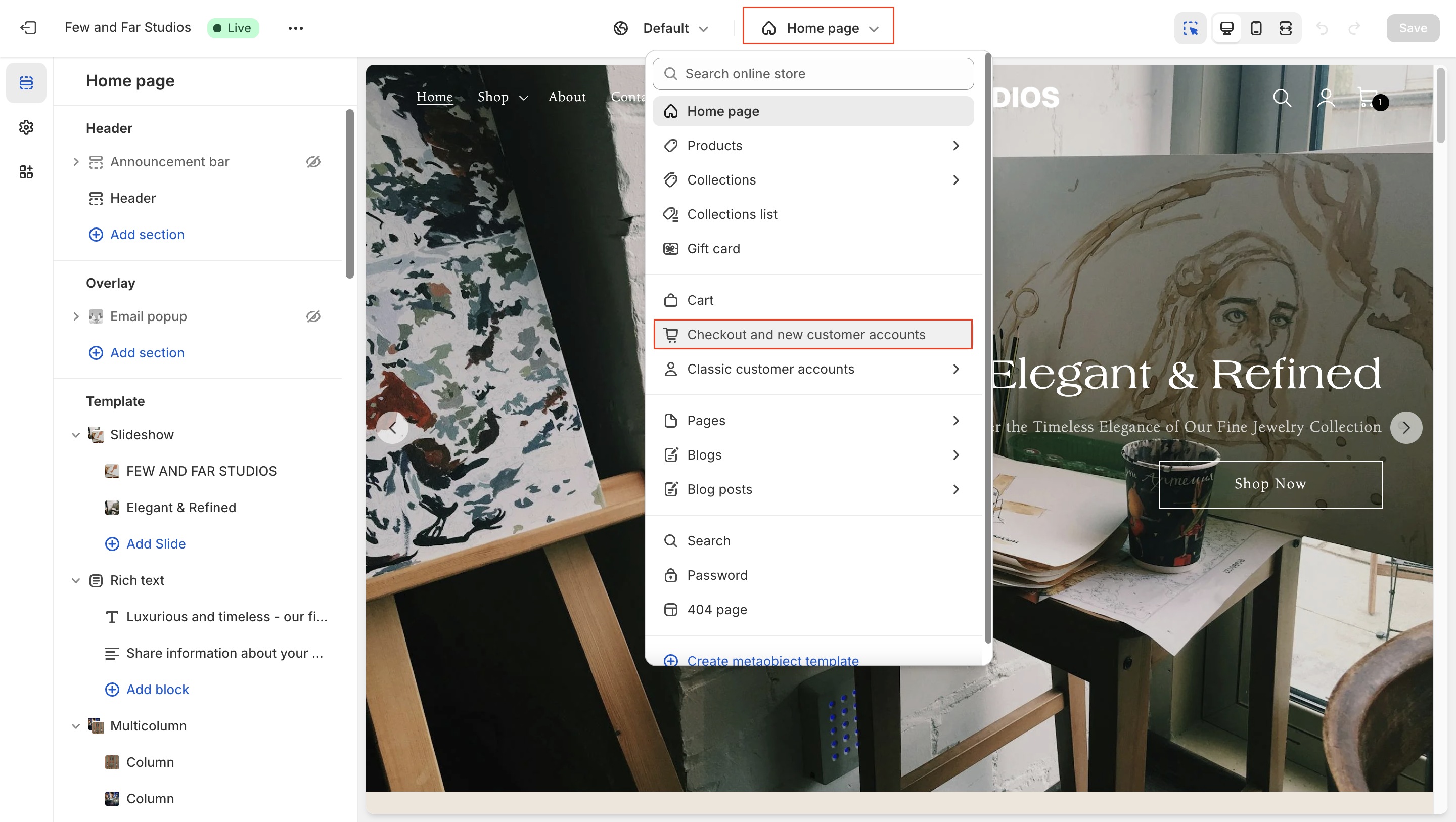 * **Typography & colors**: Use this part to change fonts and colors that match the store's aesthetic look.
