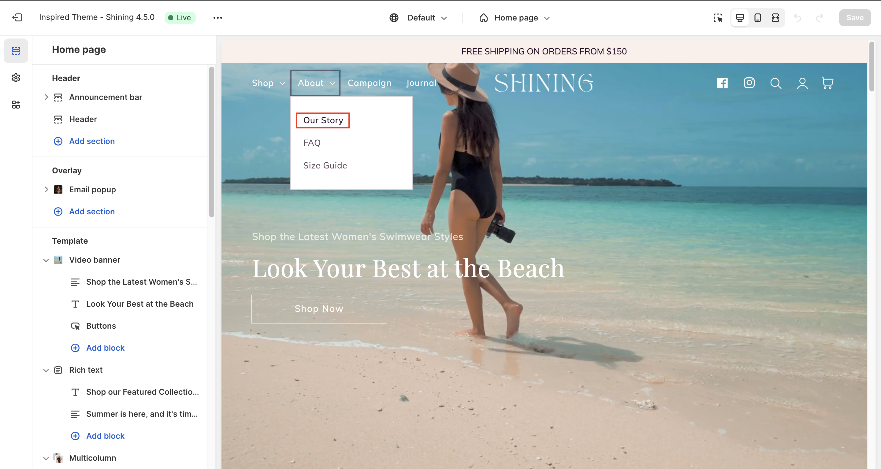 *You can start customizing the page with the pre-defined sections included in InspiredTheme.*