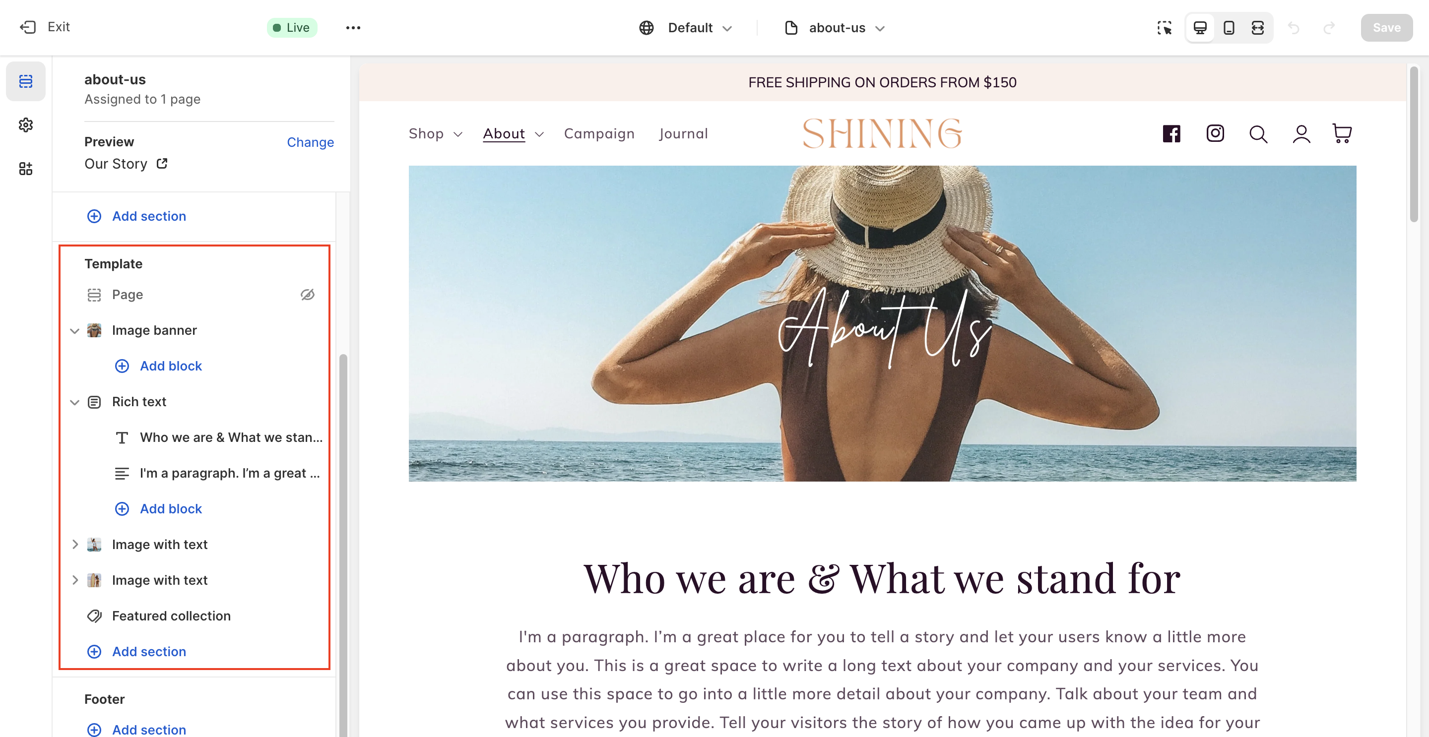 You can **add, edit, and rearrange sections** to create different layouts with the content and features you want.