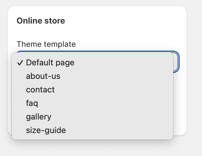 > ***Note**: Page templates cannot be assigned on **unpublished** or **trial** themes. All changes to your templates will be saved but can only be assigned when published and purchased.*