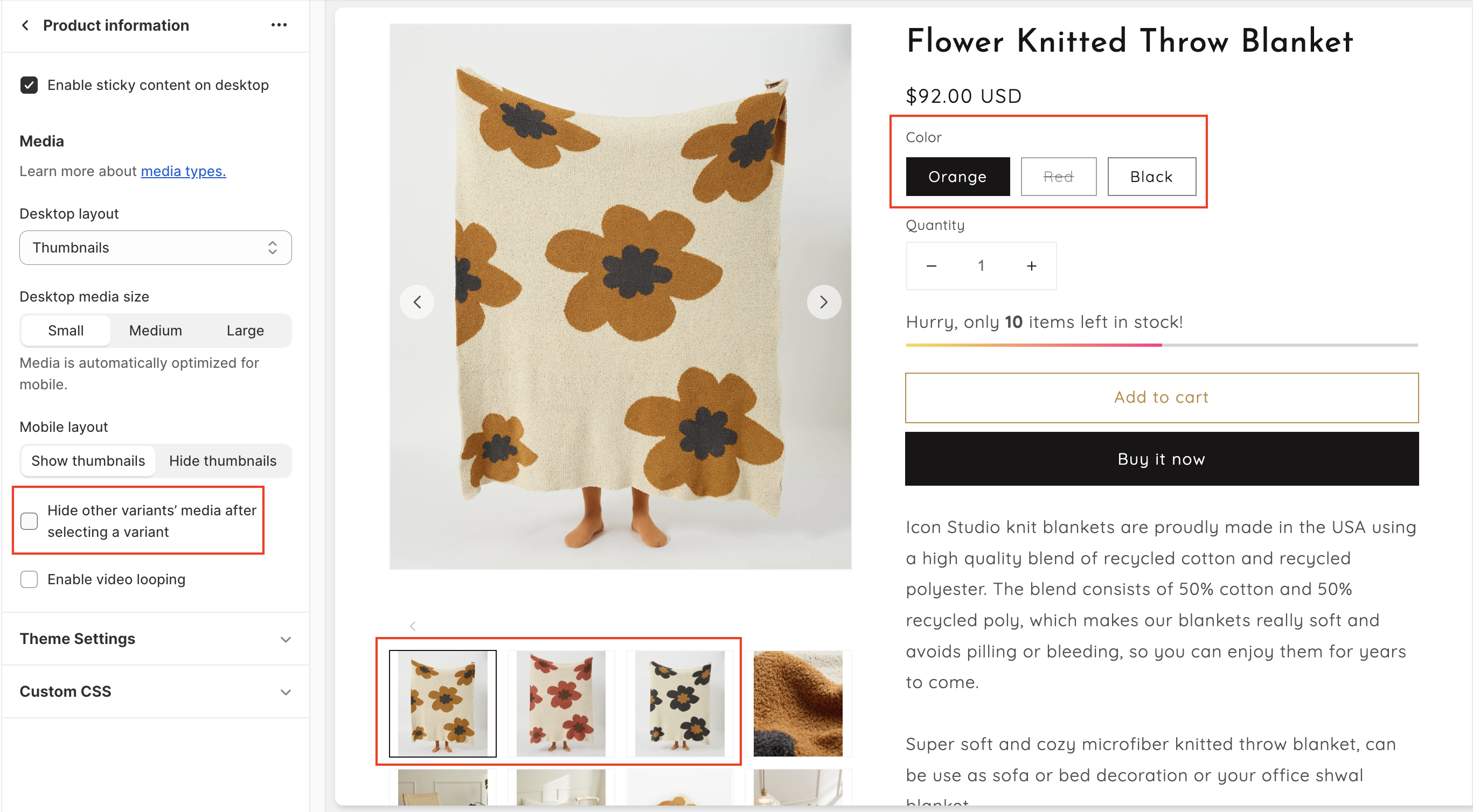 * Select a style to change the desktop layout of your product media.