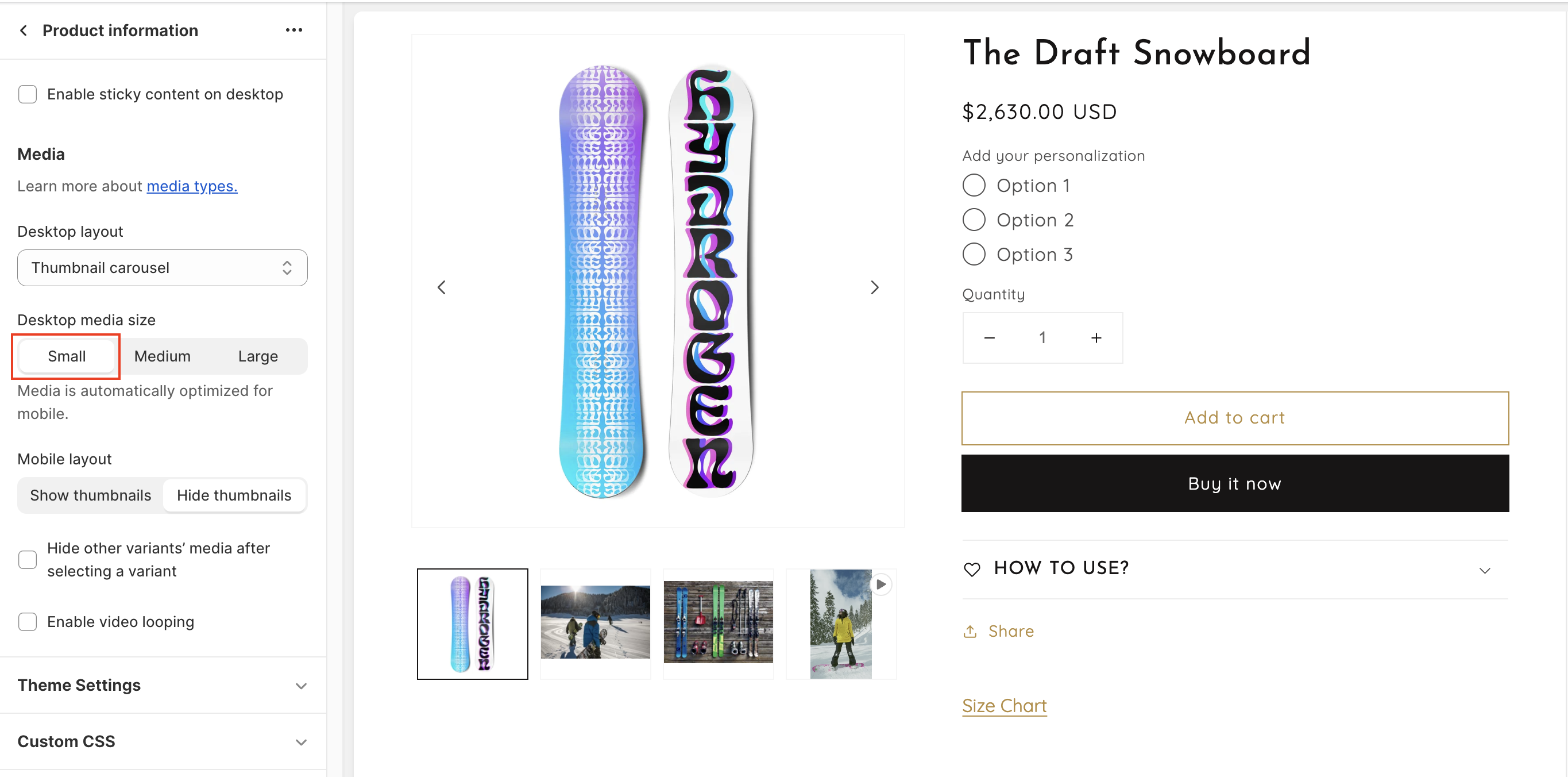 * Select the **Desktop media size** of your product media. Either **Small**, **Medium**, or **Large.**