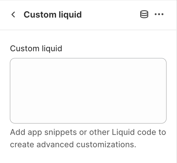 * Click on the **Custom liquid** block, the settings sidebar will open and you can configure the option below: