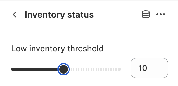 * Select the product quantity (between 1 and 20) in the **Low inventory threshold** setting.