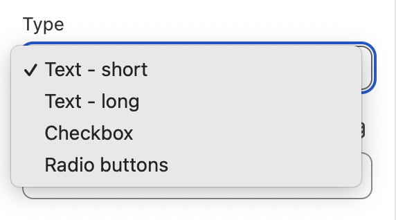 The **Checkbox** gives customers a 'yes' or 'no' option.