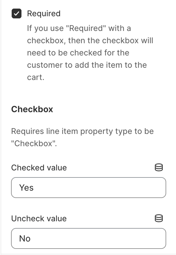 > *Note: **Line item property** blocks are used to collect and display additional information in the cart and order details. **They do not support add-on pricing**.*