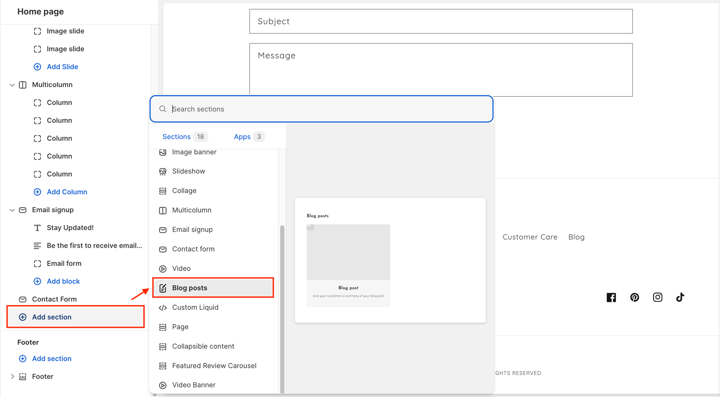 2. Blog posts section settings: