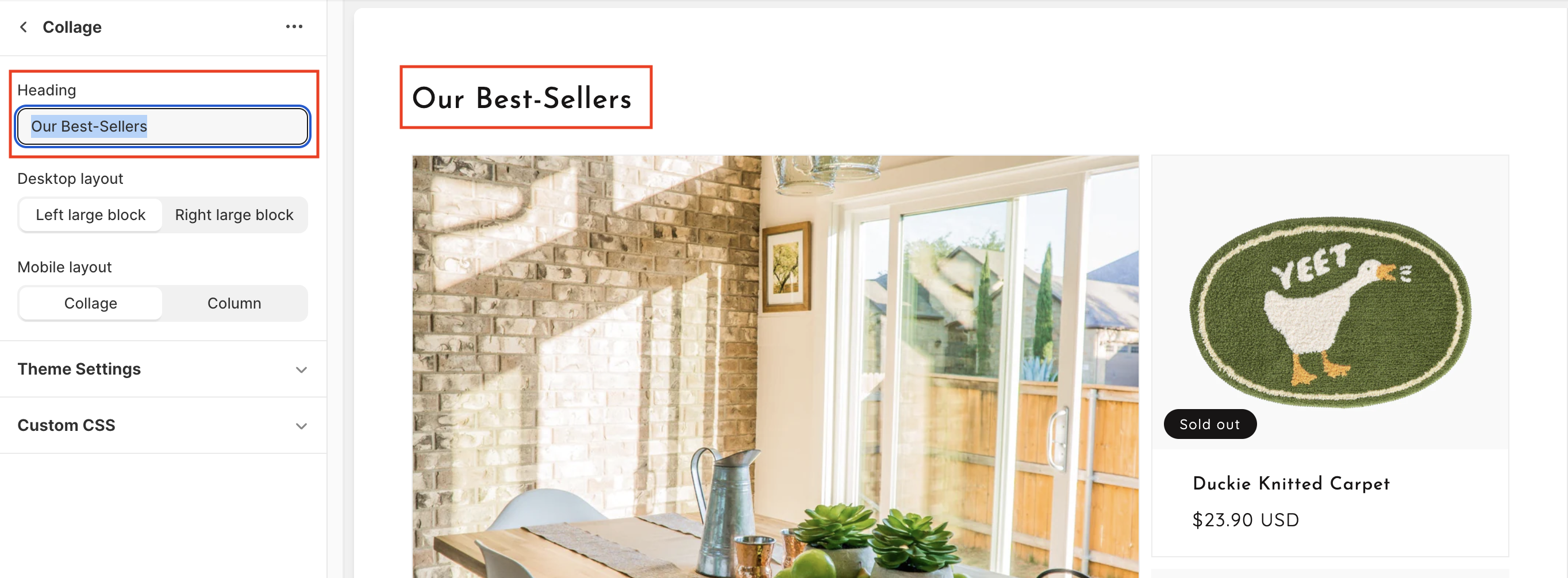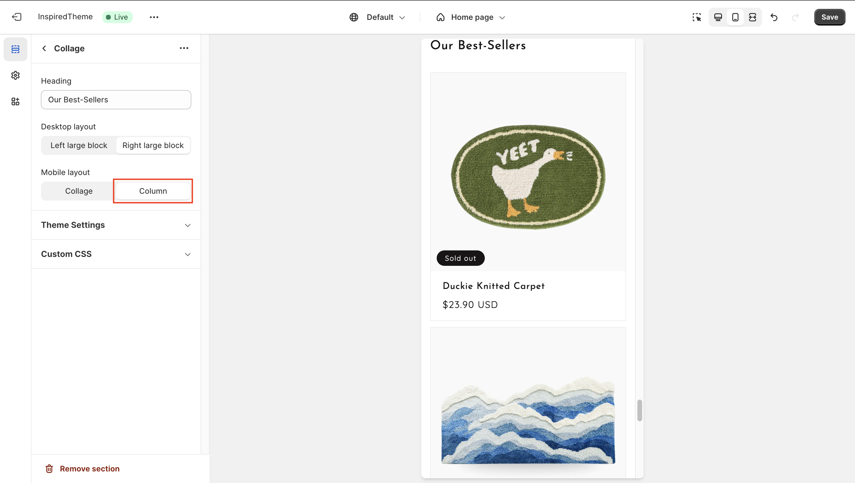 * **Mobile layout**: adjust the blocks' position to the Collage or Column.