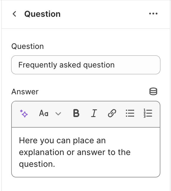 The **Collapsible content** section is not only used for **FAQs** but you can do more, like an **about us** text.