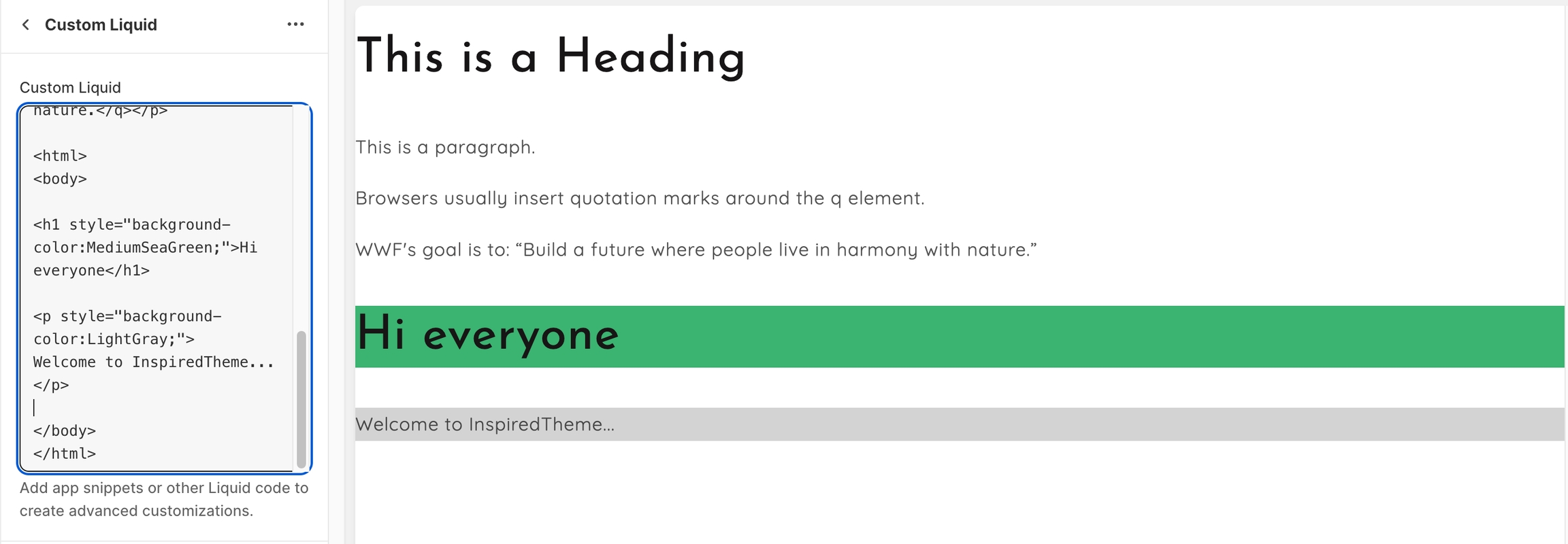 1. Our guide to set up a Custom Liquid section: