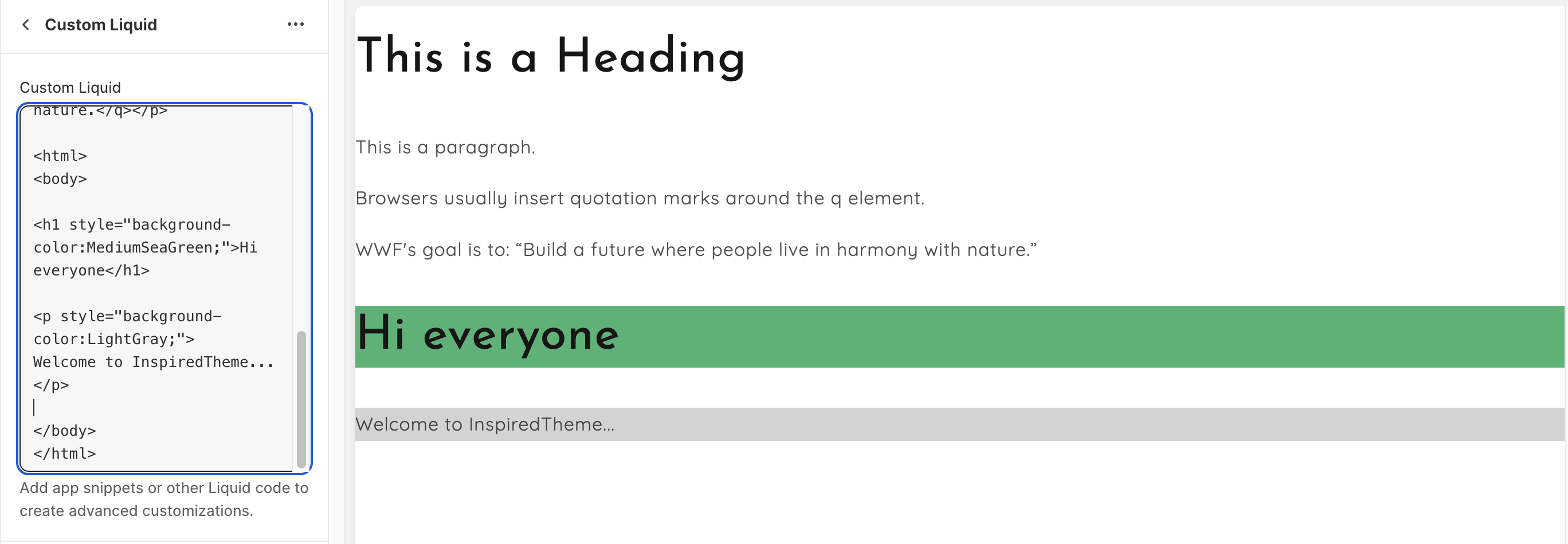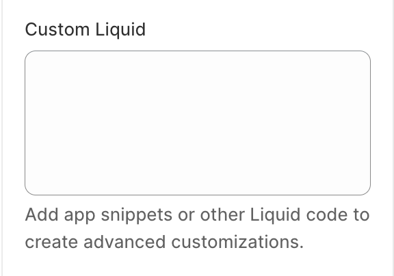 * Enter your HTML or Liquid code into the **Custom Liquid field**.