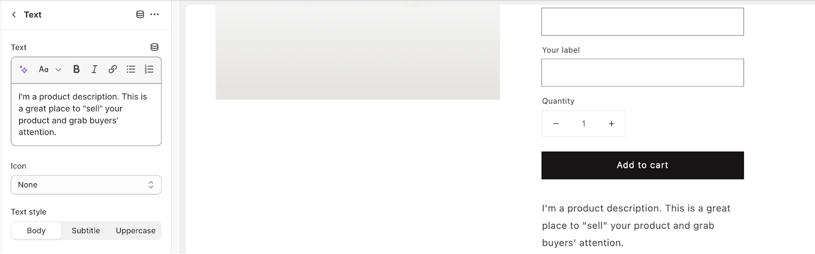 Buy button: Enable/disable the "Show dynamic checkout button" to include a direct-to-checkout button.