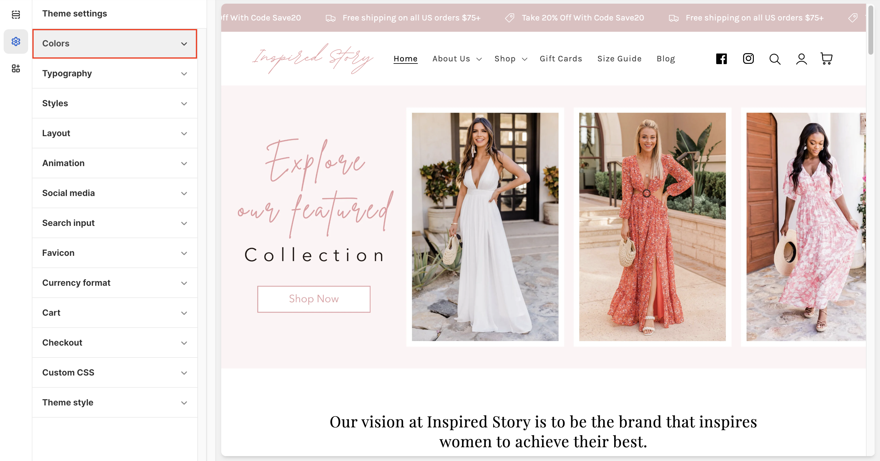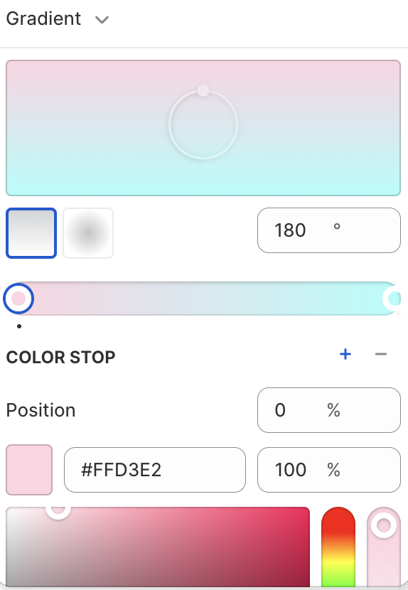 * **Color gradient**: If you want to add more visual interest to your background, **Inspiered Themes** offers the option to use gradients. You can assign gradient colors to sections of the theme.