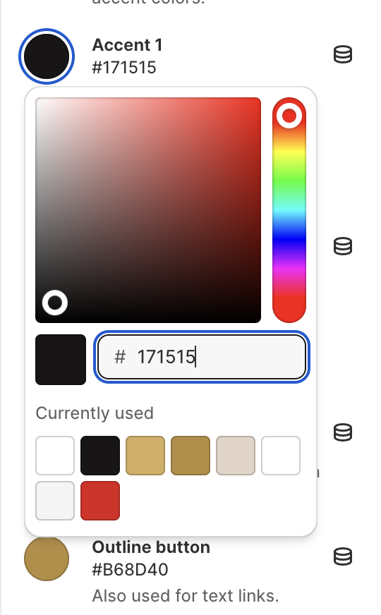 * To set your color, enter a **hex color code** or choose the color from the **color picker**. To set the color to transparent, delete the hex code from the text field.